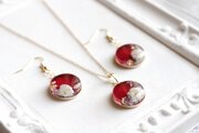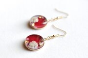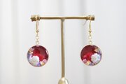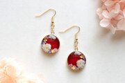 レジンアート ラウンドピアス〈ブーケ・ワインレッド〉