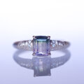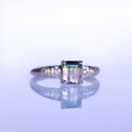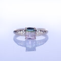 はっきりとした濃いグリーンと淡いキラキラとしたピンク色のコントラスト、カットの雰囲気や内部クラックのキラキラ、この全体のイメージがキラキラのドレスのような、品とゴージャスが共存するようなピースです。