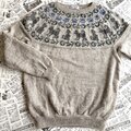 モヘアの美しいグラデーションの波がとても素適な丸ヨークセーターが届きました。上質な毛糸で丁寧に編みこまれていてとても軽いです。猛暑の夏を元気に乗り越えて、ステキなセーターに袖を通せる日を楽しみにしております^^どうもありがとうございました。