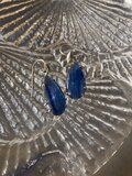 深い海の青、海がきらめいた時のシルバーの色のようなカイヤナイトのピアスです、フックに波をイメージした流線型の飾りを施し、つや消し加工しています。