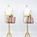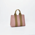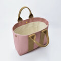 表地の色はくすみピンク、持ち手の色は薄茶。