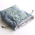 インド刺繍リボンをあしらったマチのある巾着ポーチ