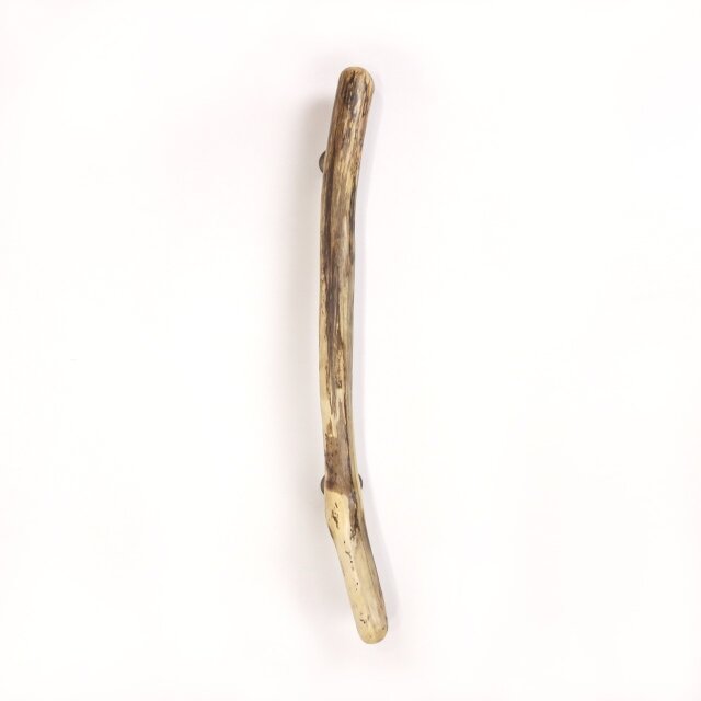 先端が丸くなっている枝の流木、金具近くのふくらむ木の節から先は 少し手前にも曲がり、反対方向へは 少しカーブしながらグーンと伸びています。