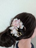 コサージュピンとクリップの留め金具を付けていますので、髪飾りにもご使用いただけます。