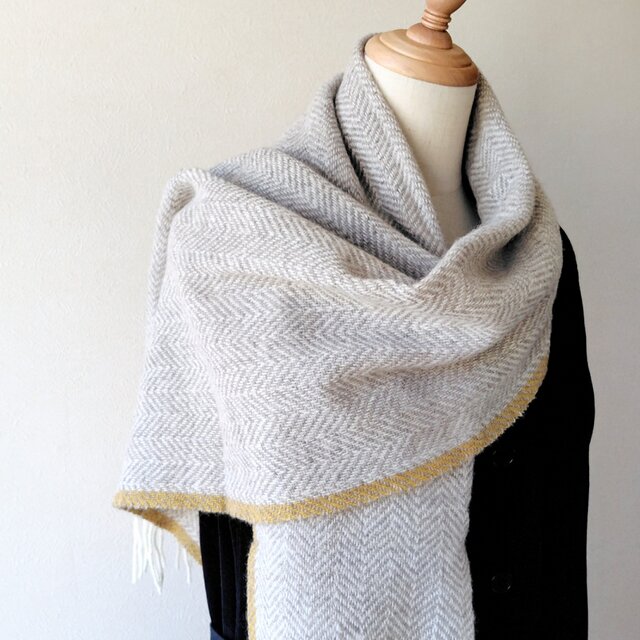 北欧手織り希少グレーヤク×ラムウールの短めマフラー