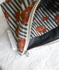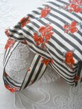 赤い花が印象的なストライプコットンに良く似合い