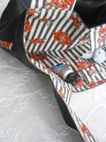 *色 無地→黒 花ストライプ→キナリ地に黒いストライプと赤い花々