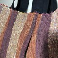 着物をさいて、機織り機で織り上げたオリジナルの生地でつくりました。