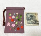 薄い紫のコットンリネンにさくらんぼとお花の刺繍を施した