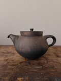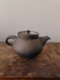 良質な半磁器土を使用して作られたポットです。金属のような質感が特徴的です。