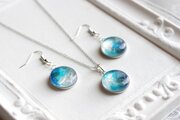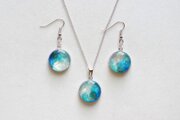 レジンアート ラウンドペンダント〈青に溺れて〉
