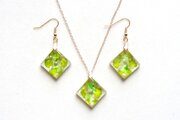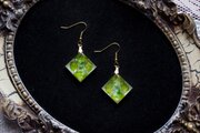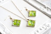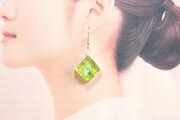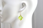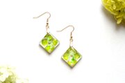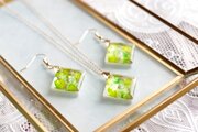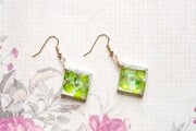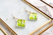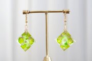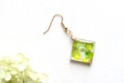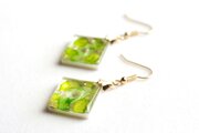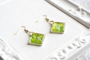 昼の日差しに輝く草原のような明るい緑色が春への予感をかきたてるピアス。