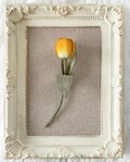 一輪ながら鮮やかで存在感のある黄色いチューリップのコサージュ。