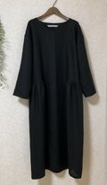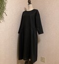 コーディネートしやすいブラックリネン100%生地でお仕立てしたサイドギャザーワンピース(pattern by mion)です。