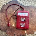 手触り感の良いワインレッドの革に茶トラ猫の刺繡を施しました。