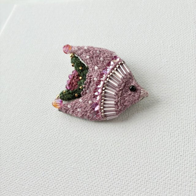"rengesou color bird''蓮華色をまとう鳥さん オーガニックウール糸を使った鳥刺繍ブローチ