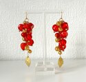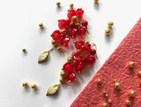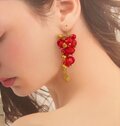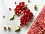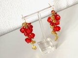 紅のほおずき風ビーズでピアスを作りました。