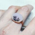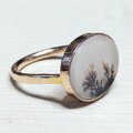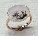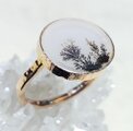 辺りを真っ白にしてしまう風雪に耐える木、濃い霧の中に浮かぶ木々のような。。自然が描いた水墨画の指輪*まるで植物の枝や木の葉のような模様を見せるデントリティックアゲート、酸化鉄やマンガンがアゲートの微細な亀裂に浸透し、結晶化することで生まれます*こちらはプレート中に手前と奥に模様がありその濃淡で奥行きさえ感じられるようです。自然が生み出した芸術作品の一点ものをお楽しみ下さい*