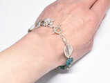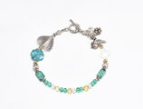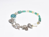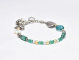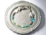 クローバーフローライト&白蝶貝、ダイスビーズ、グーズベリー、グリーンビーズ、シトリン、ボタニカル&小鳥カレンシルバーを繋いだブレスです。