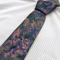 墨流し染の独特な模様が施されたネクタイです。爽やかな緑色の風模様は、自然の美しさを感じさせ、見る人を魅了します。ビジネスシーンだけでなく、カジュアルな場面でも存在感を発揮します。