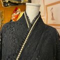 優雅な黒いフリルとパール装飾があしらわれ、