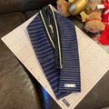 着物 リメイク 重ね衿 伊達襟 パール フリル レトロ 古着 和洋折衷 モダン 深い紺地に繊細な白い絞り風模様 E-57