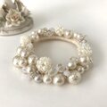 ビーズボール ビジュー クロッシェ シュシュ キスカ ホワイト ヘアゴム パール まとめ髪 フォーマル 入学 卒業 結婚式