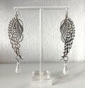 ピアス 天使の羽根とリング シルバー イヤリング交換可 フィッシュフック 透明 クリア 軽い 軽量 大きめ 大ぶり