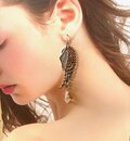 片翼の天使の羽根フィグリーとリングを連ねてピアスを制作しました。