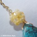 Ecruはブルーとイエローやゴールドを合わせるのが好きなので、今回やイエローのジルコンを花編みにして、チェーンに通しました