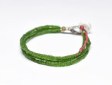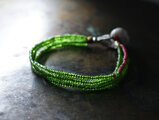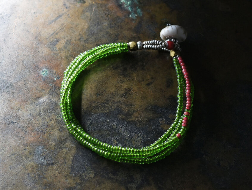 アンティークグリーンシードビーズと金赤ホワイトハーツを繋いだ4連ブレスです。