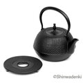 南部鉄瓶を代表する「南部型」のフォルムに、趣深いアラレ文様を施したデザインの鉄瓶です。