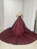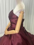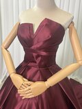 エレガント ボルドー色 カラードレス 光沢サテン ベアトップ スリット 演奏会/音楽会 ロングトレーン