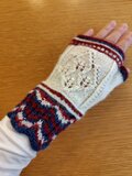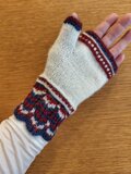 カフスにエストニアの技法を使ったコンパクトなハーフミトンです。