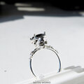 ファセットカットが施されたブラックスピネルを、唐草の細身のアームにセットしました。