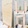 パネル貼り付けは簡単です。4本あるフレームのうち、上部の横フレーム1本を取り付けず、好きなサイズの合板(9mm厚推奨)を下の横フレーム乗せ、左右2本ある縦のフレームに木工ボンドなどで貼り付けるだけです。写真使用例の合板は90×50cm、ホームセンターで安価に入手できます。