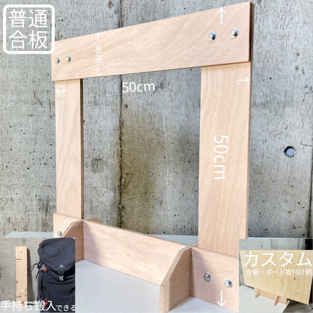 工具不要で分解組み立てができクランプ固定が可能です。四隅は蝶ネジでとめていますので、ネジをはずせば50cmの板だけになります。