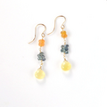 春の陽光を浴びたような イエローオパール、みずみずしい 非加熱グリーンサファイア、 プレシャスオパール を繋いだ、華奢で繊細なロングピアス。