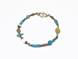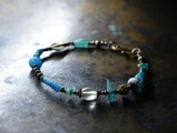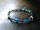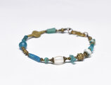 エメラルドブルーローマン多彩ローマングラスとアンティークボヘミアビーズ、民族ブラス、発掘ビーズなどを繋いだブレスです。