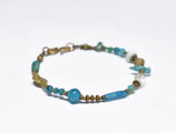 エメラルドブルーローマン多彩ローマングラスとアンティークボヘミアビーズ、民族ブラス、発掘ビーズのブレス