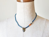 2種類のインドビーズとハート型アフガンメタル、民族鈴、シャン族カーネリアン、古代瑪瑙、つぶつぶブラス、oldチンシルバー&オリッサブラスなどを繋いだネックレスです。