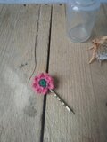 ピンク×グリーンの毛糸で編んだ、小花のヘアピンです。
