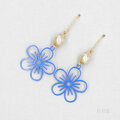 【お花とパールのピアス】イヤリング ブルー プチプラ 青