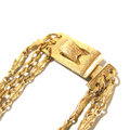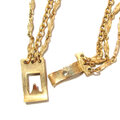 70s USA Gold Tone Buckle Design Triple Chain Long Necklace