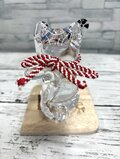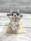 両手をあげて元気いっぱい!キラッと輝くガラスの招き猫、「福よ来い!」と全力アピール中です!