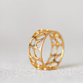 幅広のリングデザインが個性的で、存在感をアピールし、多くの穴がランダムに開け、波の網目をイメージしました。