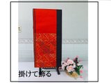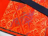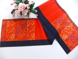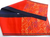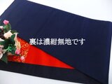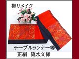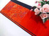 ■新品の帯をリメイクしました。贈り物にも最適です。紺と赤地に両端から38cmは流水文様で上品な色合いです。