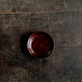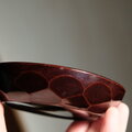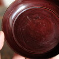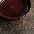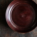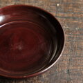 深みのある赤身を帯びた茶色が素敵な漆木皿になります。