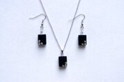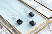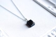 ブラックのレジンにお花を三輪あしらった、シンプルながらも可憐なペンダント。