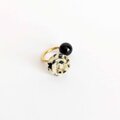 SUS316イヤーカフ/片耳用[Dalmatian jasper rose/Gold]サージカルステンレス オニキス 薔薇